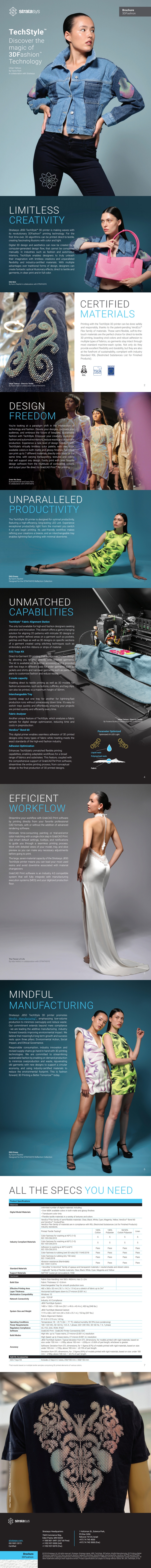J850™ TechStyle™ 3D 打印机采用 3DFashion™ 技术,为设计作品提供了全彩、多材料的打印功能,可直接打印到织物、服装、鞋类和豪华配饰上,从而实现了传统方法无法实现的结果。